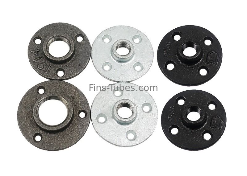 Mehr Details 1/2' 3/4" BSP weibliche Gewinde formbare Eisenrohr mit vier Löchern normalen schwarzen Bodenflansche
